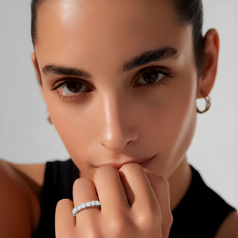 Un elegante anello in oro bianco 14 carati con 17 diamanti naturali taglio brillante per un totale di 4,10 carati (colore D–E, purezza VVS–VS). Il sottile oro bianco 585 permette alla fascia continua di diamanti di brillare intensamente, rendendo questo anello un potente simbolo di impegno e amore – misura 53, in esclusiva da Mahler Jewelers.