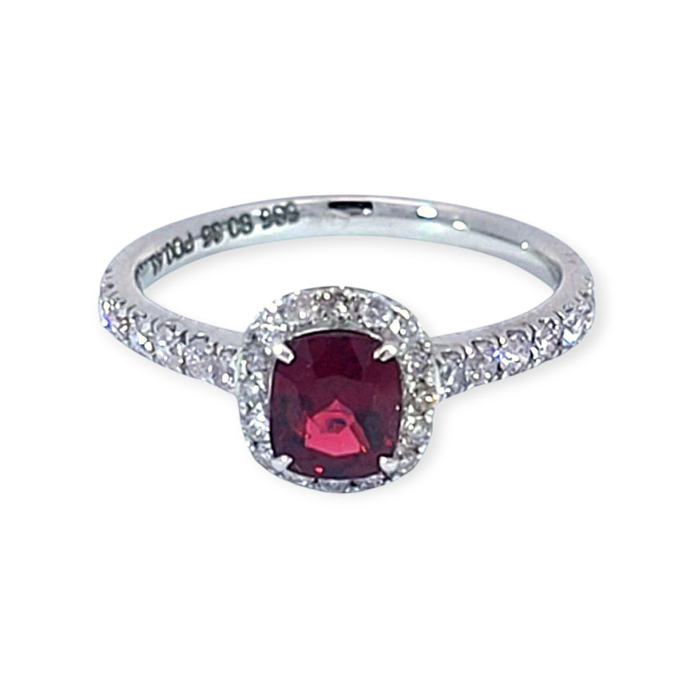 Umrahmt wird der Edelstein von 30 natürlichen, pinkfarbenen Diamanten mit insgesamt 0.48 Karat, die seine Leuchtkraft fein akzentuieren und dem Ring eine außergewöhnliche, feminine Strahlkraft verleihen. Das kühle Weissgold bildet einen stilvollen Kontrast zur warmen Farbigkeit der Edelsteine und unterstreicht die elegante Gesamtwirkung dieses kunstvoll gefertigten Schmuckstücks.